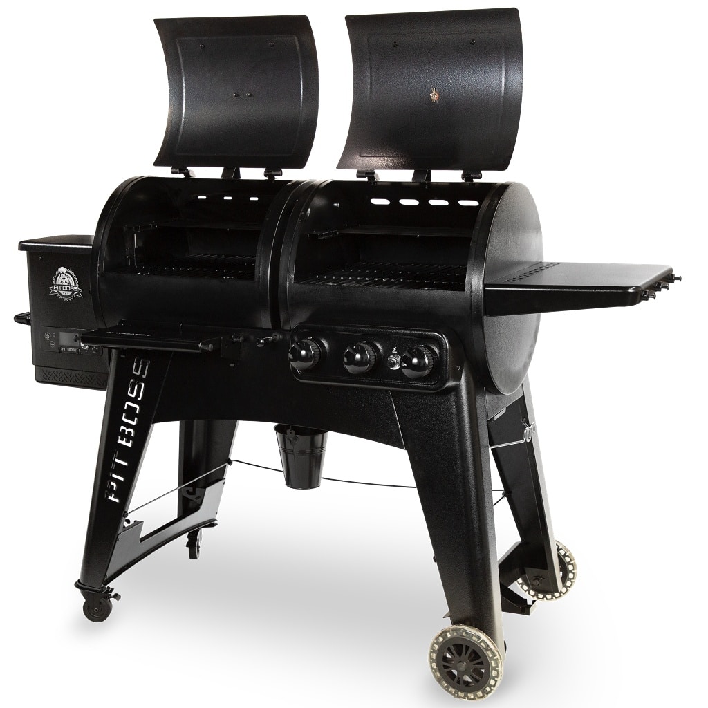 Grătarul Combo Pit Boss Navigator Series vine cu o serie de caracteristici suplimentare, 3 arzătoare de gaz, o sondă de carne inclusă, un rezervor mare de peleți, picioare întărite, un finisaj rezistent la temperaturi ridicate cu pulbere, un raft frontal pliabil, cârlige incluse pentru instrumentele de gătit, roți cu sistem de blocare și o garanție Pit Boss de 5 ani.