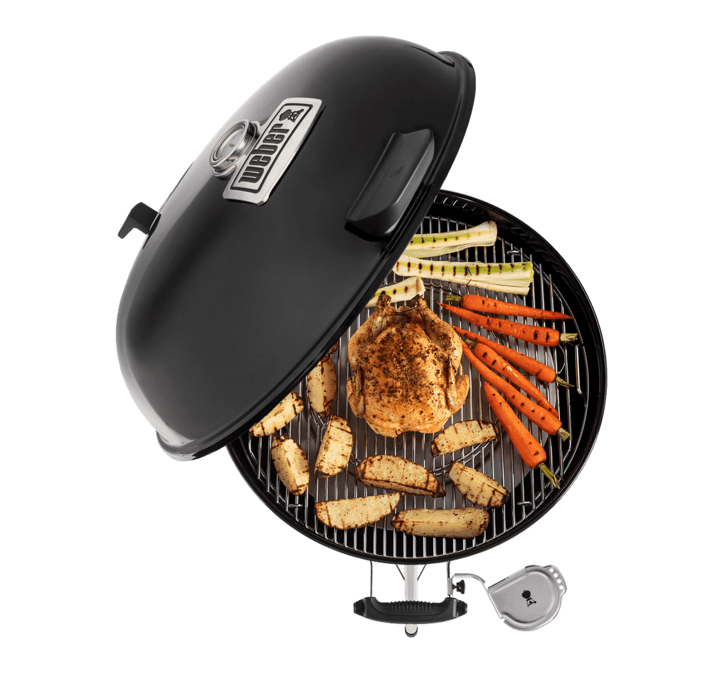 Grătar cărbuni Master-Touch Premium GBS E-5770 Weber -indiferent dacă este vorba despre gătit la grătar, de afumare sau de gătit lent (slow-food), acest grătar oferă posibilități nelimitate, cu un confort maxim. Cu capacul articulat, suportul pentru termometrul iGrill și grila GBS din oțel inoxidabil, nu există limite.