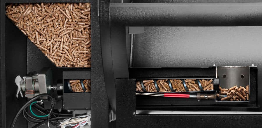 - Motor fără perii cu racord direct la șurubul de transport al peleților pentru o încălzire rapidă și precisă a camerei de gătit