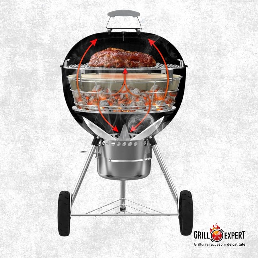 Capacitatea generoasă a coșului permite utilizarea unei cantități mari de cărbuni și lemn, oferind libertatea de a găti ore întregi fără reîncărcare. Structura robustă asigură stabilitate și siguranță în utilizare, fiind compatibilă cu grătarele kettle de 57 cm (ex. Weber).