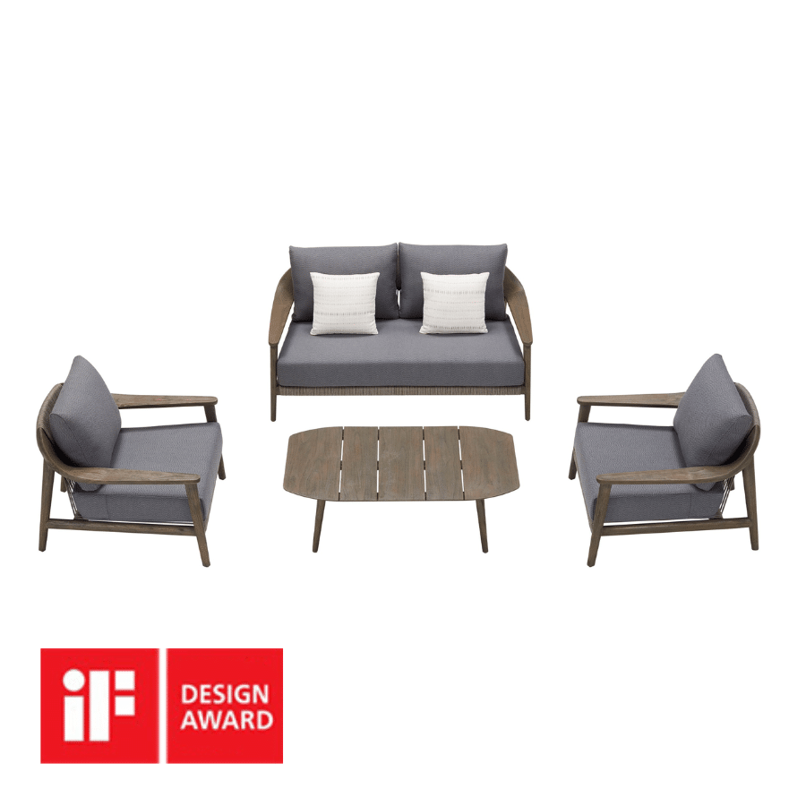 Setul de mobilier Higold Leo include o canapea cu doua locuri, doua fotolii si o masuta de cafea. Cadrul mobilierului este realizat din lemn de tec FSC de calitate superioara, cu aspect frumos. Sezutul pieselor din aceasta colectie este unul deosebit de gros si confortabil. Toate pernele de sezut si spatar sunt prevazute cu huse din material acrilic de calitate superioara, rezistente si placute la atingere.