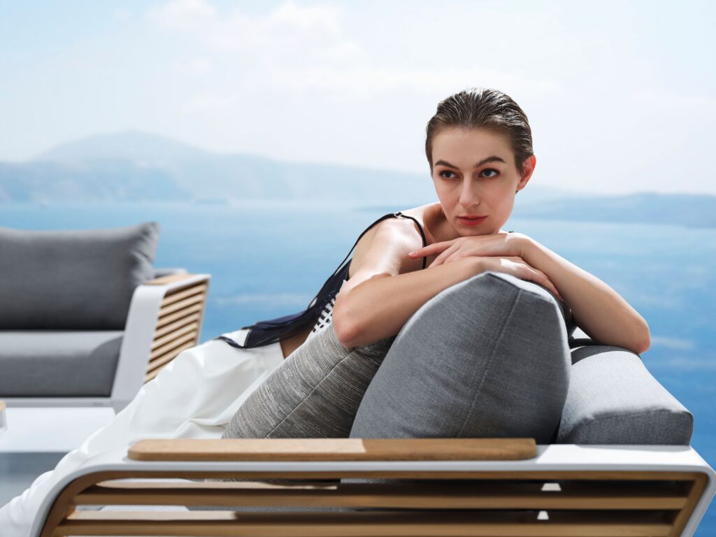 Un material cu calitati deosebite: durabil, rezistent la intemperii si la razele solare. Este impermeabil, nu absoarbe apa si se usuca foarte rapid. Isi mentine culoarea timp indelungat si este usor de intretinut. De asemenea este un material sustenabil, 100% reciclabil. Se fabrica din polipropilena. Deoarece este un material rezistent la pete din natura, nu este necesar folosirea solutiilor antimicrobiene și compusurilor polifluorurate, care sunt adesea folosite in cazul mobilierului cu tapiterie din materiale conventionale, si care au efecte negative asupra sanatatii si al mediului. Murdaria si radiatiile UV nu afecteaza calitatea materialului, pernele sunt rezistente si confortabile.
