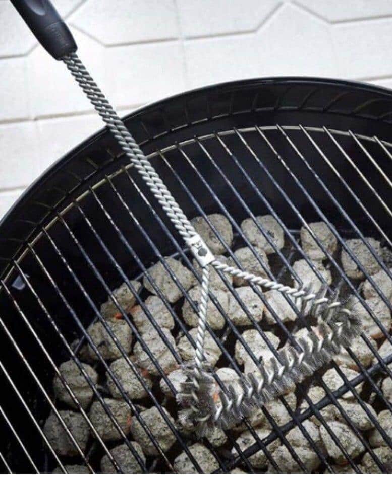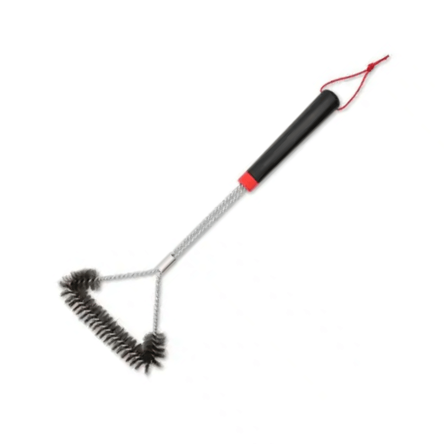Perie T pentru grătar cu trei părți – pentru curățarea spațiilor de la grilele de gătit și a locurilor greu accesibile. Perii din inox nu deteriorează emailarea cu porțelan. Dotată cu mâner ergonomic, manevrare simplă și confortabilă, agățătoare din piele. potrivită pentru toate suprafețele de gătit: fontă emailată, oțel inoxidabil sau oțel cromat. Ideală pentru grătarele mai mari.