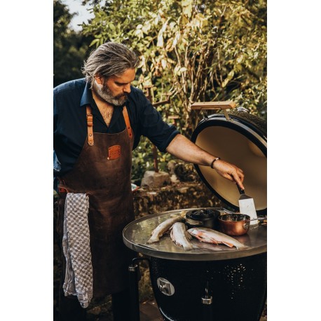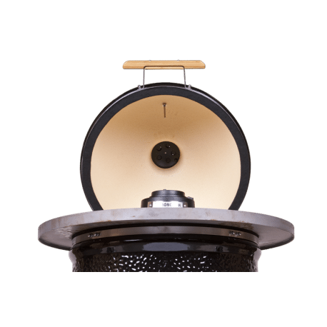Placa de foc este realizată special pentru Monolith LeChef și are o etanșare pe partea inferioară a marginii ceramice. În centrul plăcii se poate instala capacul ventilului clasic, astfel încât să puteți continua să reglați perfect temperatura. Pe spatele plăcii există o adâncitură, astfel încât capacul grătarului nu trebuie dezasamblat.
