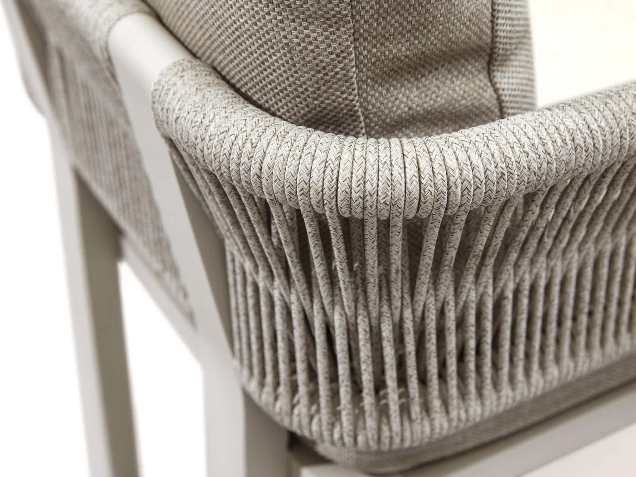 Un material cu calitati deosebite: durabil, rezistent la intemperii, la umezeala, la mucegai si la razele solare. Este impermeabil, nu absoarbe apa si se usuca foarte rapid. Isi mentine culoarea timp indelungat si este usor de intretinut. De asemenea este un material sustenabil, 100% reciclabil. Se fabrica din polipropilena. Deoarece este un material rezistent la pete din natura, nu este necesar folosirea solutiilor antimicrobiene și compusurilor polifluorurate, care sunt adesea folosite in cazul mobilierului cu tapiterie din materiale conventionale, si care au efecte negative asupra sanatatii si al mediului. Murdaria si radiatiile UV nu afecteaza calitatea materialului, pernele sunt rezistente si foarte moi.